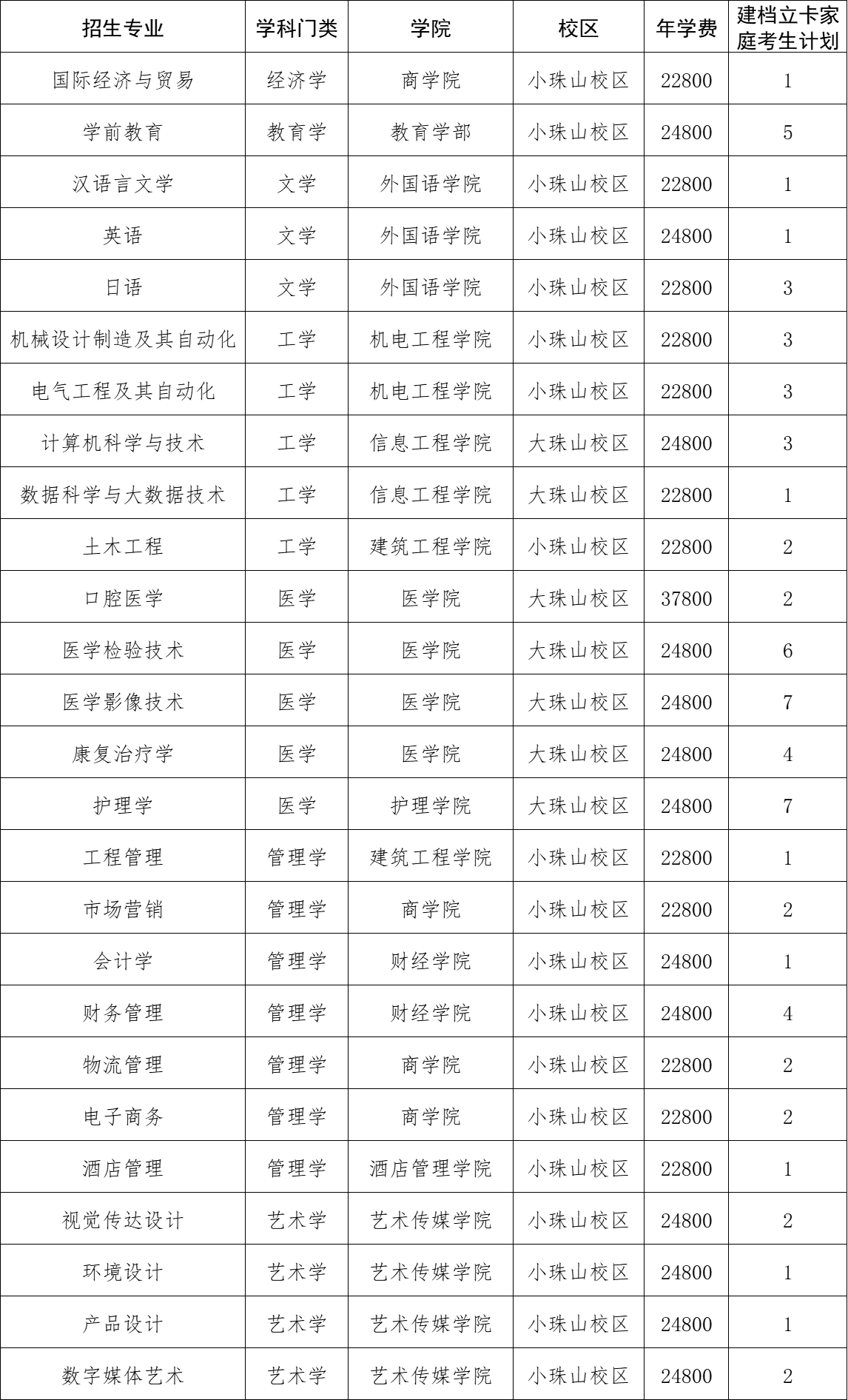 青岛滨海学院2026年建档立卡家庭考生专升本招生计划