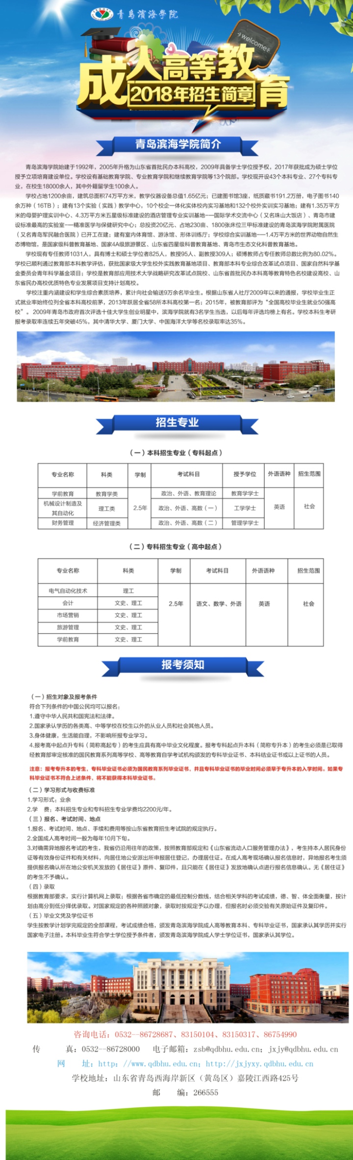上一条:青岛滨海学院2018年专科(高职)注册入学招生章程 下一条:青岛滨海学院2018年招生章程